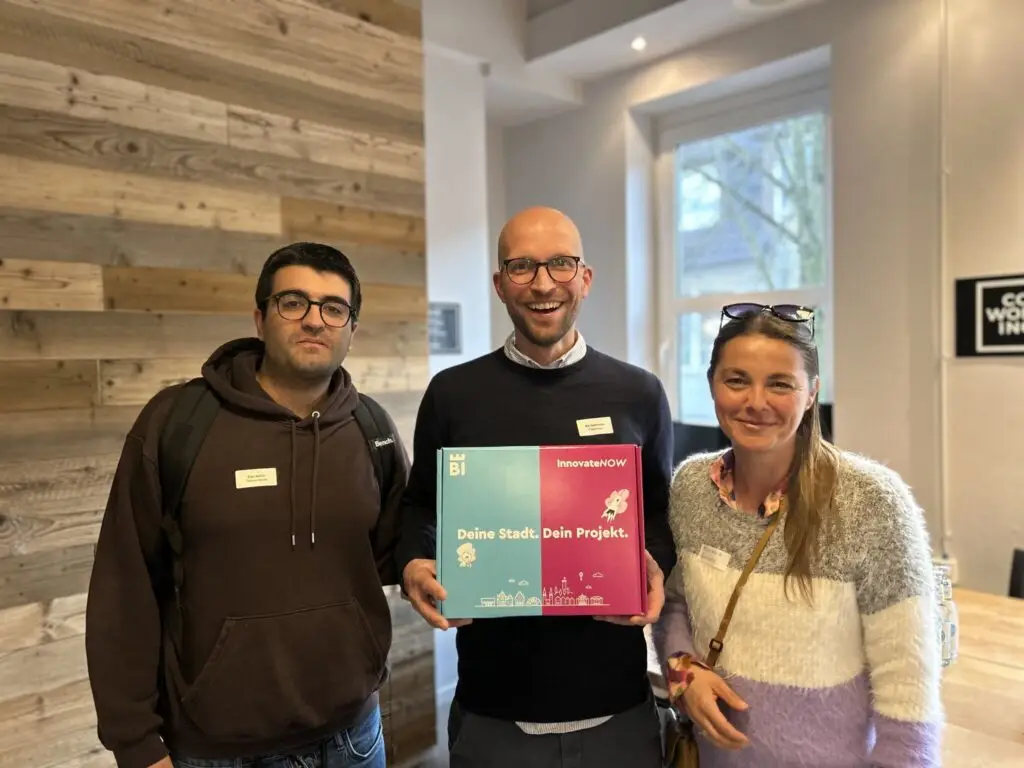InnovateNow ist ein Ideenwettbewerb zur Entwicklung digitaler Lösungen für die Bielefelder Innen- und Altstadt. Es ermöglicht die Zusammenarbeit zwischen Stadtverwaltung, Wirtschaft und Bürger*innen. Das Ziel war es, mindestens eine der präsentierten Ideen nach dem Pitch auszuwählen und in die Umsetzung zu bringen.